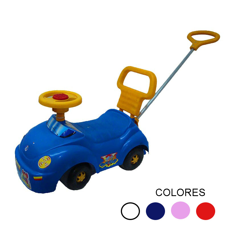 Montable eco con respaldo y bastón para un fácil control de mamá, claxon en el volante.